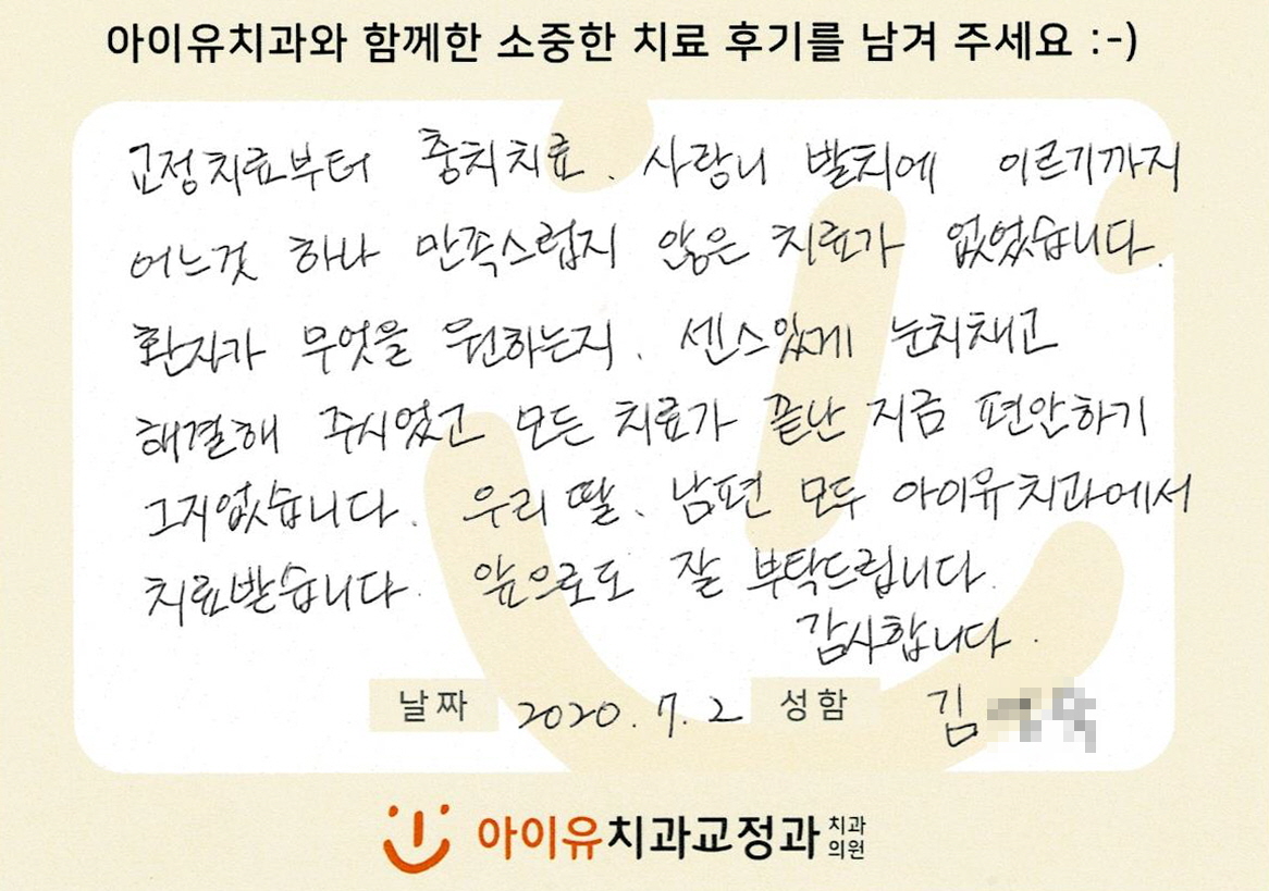 교정치료와 일반진료(충치,사랑니)를 함께 진행하신 김OO님의 후기입니다. 페이지 정보 작성자 아이유치과 댓글 0건 조회 1,339회 작성일 20-07-04 17:57 본문 교정치료와 일반진료(충치,사랑니)를 함께 진행하신 김OO님의 후기입니다. 목록 이전글비뚤한 앞니를 치료하신 이OO님의 후기입니다. 20.07.04 다음글웨딩촬영을 앞두고 앞니를 교정하신 성OO님의 후기입니다. 20.07.03 댓글목록 댓글목록 등록된 댓글이 없습니다.