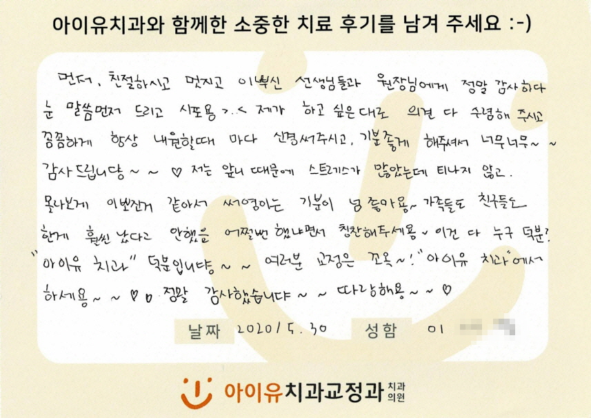 대문니가 비뚤하여 교정하신 이OO님의 후기입니다. 페이지 정보 작성자 아이유치과 댓글 0건 조회 1,393회 작성일 20-06-18 12:32 본문 대문니가 비뚤하여 교정하신 이OO님의 후기입니다. 목록 이전글덧니로 교정하신 조OO님의 후기입니다. 20.06.18 다음글교정진료와 일반진료를 함께 진행하신 박OO님의 후기입니다. 20.06.18 댓글목록 댓글목록 등록된 댓글이 없습니다.