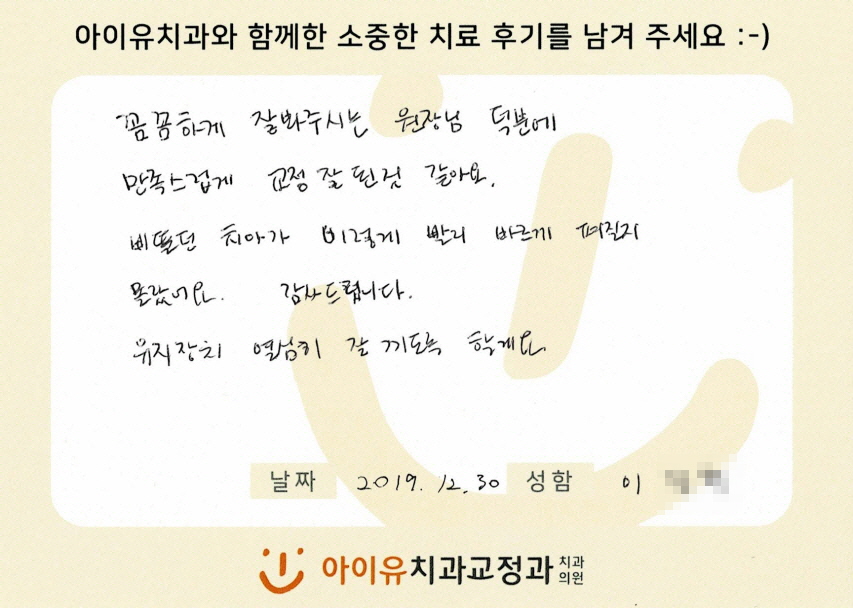 앞니가 비뚤하여 교정하신 이OO님의 후기입니다. 페이지 정보 작성자 아이유치과 댓글 0건 조회 1,248회 작성일 20-06-18 11:56 본문 앞니가 비뚤하여 교정하신 이OO님의 후기입니다. 목록 이전글앞니가 비뚤하여 교정하신 전OO님의 후기입니다. 20.06.18 댓글목록 댓글목록 등록된 댓글이 없습니다.