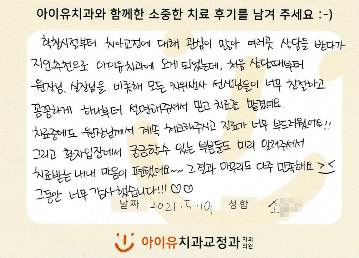앞니를 가지런하게 교정하신 소OO님의 후기입니다. 페이지 정보 작성자 아이유치과 댓글 0건 조회 1,274회 작성일 21-05-19 11:07 본문 앞니를 가지런하게 교정하신 소OO님의 후기입니다. 목록 이전글출산 후 틀어진 앞니를 교정하신 진OO님의 후기입니다. 21.05.21 다음글비뚤한 아랫니를 교정하신 정OO님의 후기입니다. 21.05.19 댓글목록 댓글목록 등록된 댓글이 없습니다.