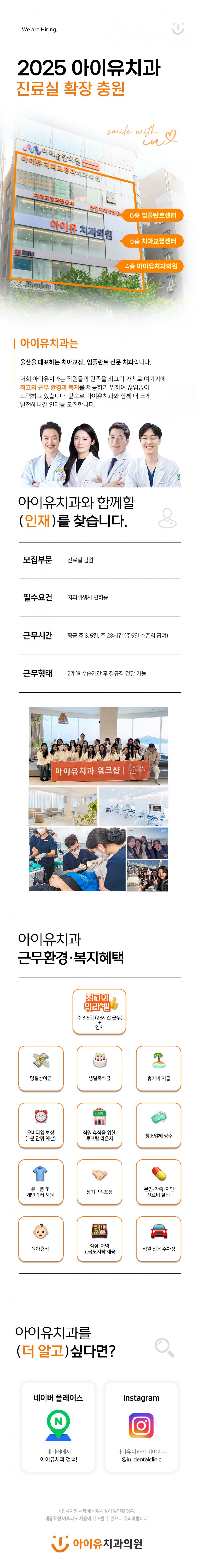 아이유치과 진료실 확장 충원 페이지 정보 작성자 아이유치과 댓글 0건 조회 237회 작성일 25-04-09 11:08 본문 목록 다음글아이유치과 영상PD 모집 25.04.09 댓글목록 댓글목록 등록된 댓글이 없습니다.