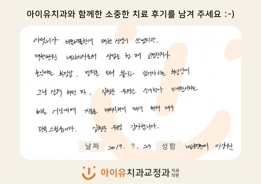 고려대병원 소화기내과전문의 이원장님의 감사의 후기